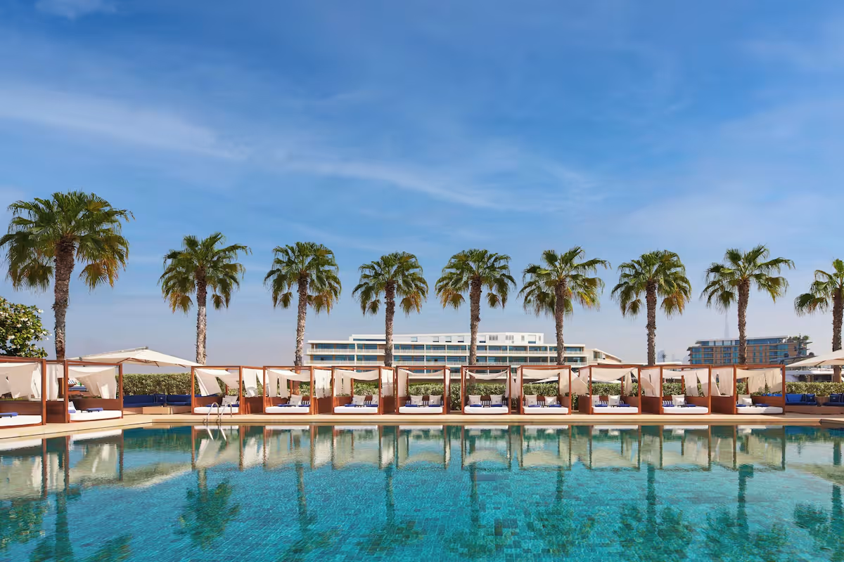Bulgari Resort Dubai offers a refined retreat near City Walk where travelers enjoy a private beach and expert spa treatments. The property's five restaurants serve authentic Italian cuisine in an elegant setting that complements the resort's sophisticated atmosphere.